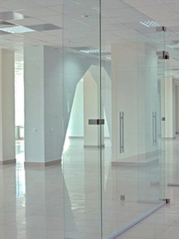 Двери для цельностеклянных перегородок могут отличаться по способу их установки: с маятниковым креплением, раздвижные или на петлях.